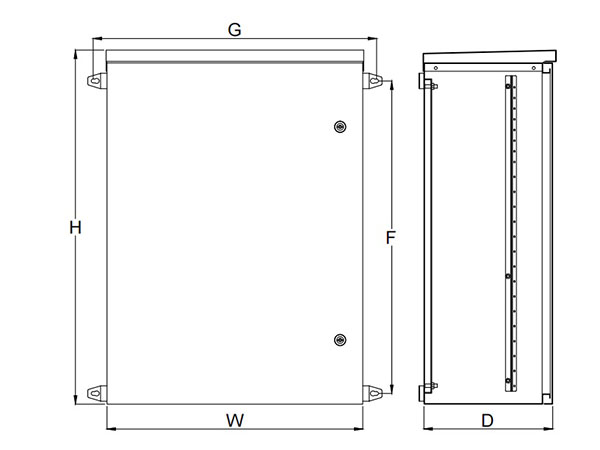- Stainless Steel Enclosure with Double Layer Top, Wall Mounted, Turn Latch, IP66